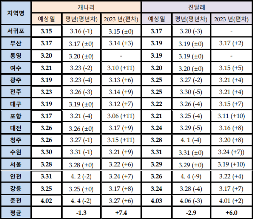 2024 개나리 개화시기